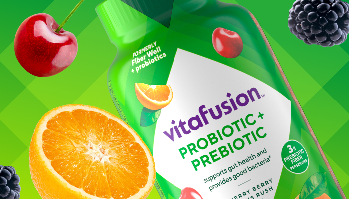 Gut check your digestive health* with vitafusionTM Probiotic + Prebiotic Gummy Vitamins (formerly Fiber Well + Probiotics). Each two-gummy serving supplies 800 million CFU of probiotics to the digestive tract and provides 3g of prebiotic fiber to help support gut health.* All that goodness is packed into tangy, tasty gummies in Cherry Berry Citrus Rush flavor that you’ll actually look forward to taking every day. This chewable fiber supplement is a delicious gummy alternative to hard-to-swallow fiber pills, fiber capsules, and thick fiber powder.